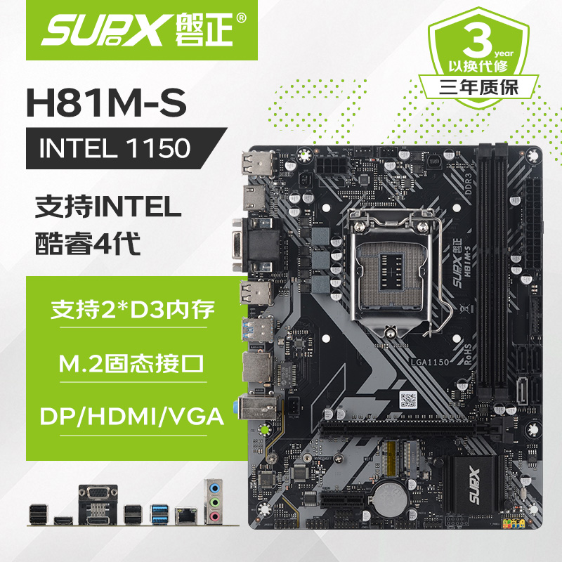 三相供电 显示输出 vga hdmi DP 千兆网卡/5.1声卡 前置usb 2.0*2 后置usb 2.0*4 usb 3.0*4 带WiFi、蓝牙模块插槽 支持双m.2协议,sata*4 支持 2 条 DDR3 内存条 支持LGA1150针脚处理器