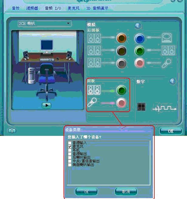 选择“混频器”,单击 “图(1)左中位置扳手图标”,在弹出的“混音器工具箱”中,钩选上“启用多路回放”并点击OK确认键,这时将会有一个提示启用信息。